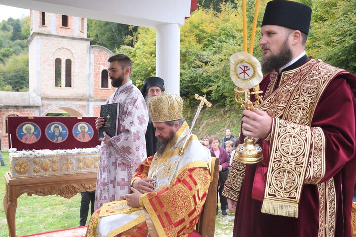 Слава манастира Медна – Свети Преподобномученици Серафим, Авакум и Мардарије, прослављена је светом архијерејском Литургијом у суботу, 11. октобра 2025.