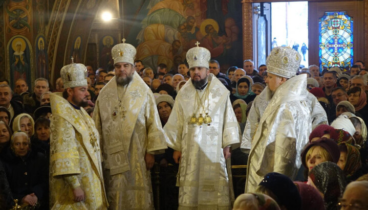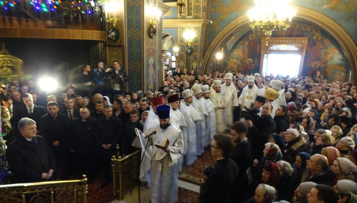 According to "Ukrinform", apart from Poroshenko, the service, led by “Metropolitan” Epiphany, was also attended by Prime Minister Vladimir Groysman and Member of Parliament Aleksei Poroshenko. The OCU head was concelebrated by Metropolitan Alexander (Drabinko), banned by the UOC Synod of from ministry.