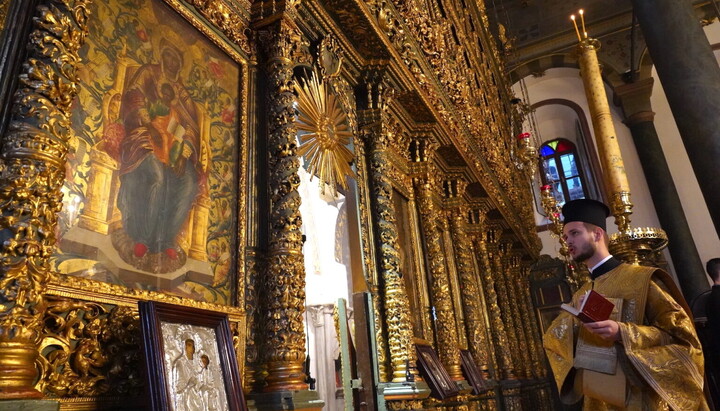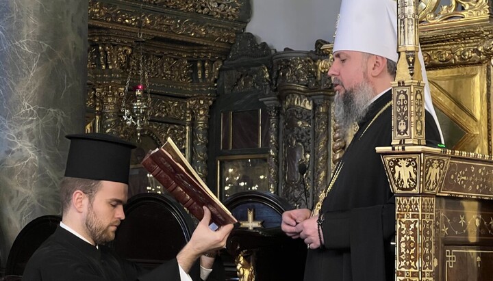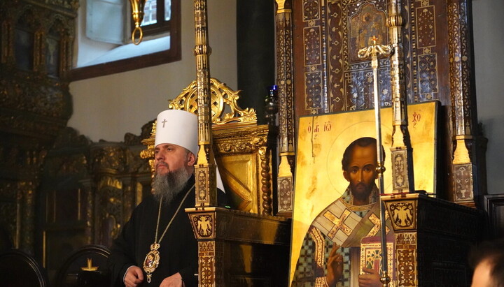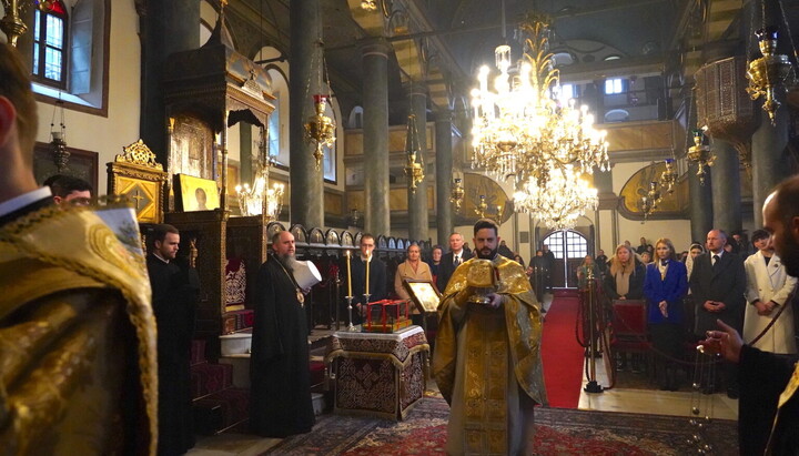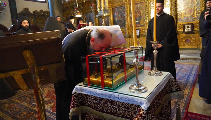 Earlier in the morning, Patriarch Bartholomew attended the Divine Liturgy in honor of the transfer of the relics of St. John Chrysostom at the Patriarchal Church of St. George on the Phanar, which was "led" by Epifaniy Dumenko.