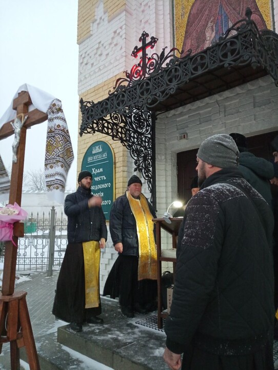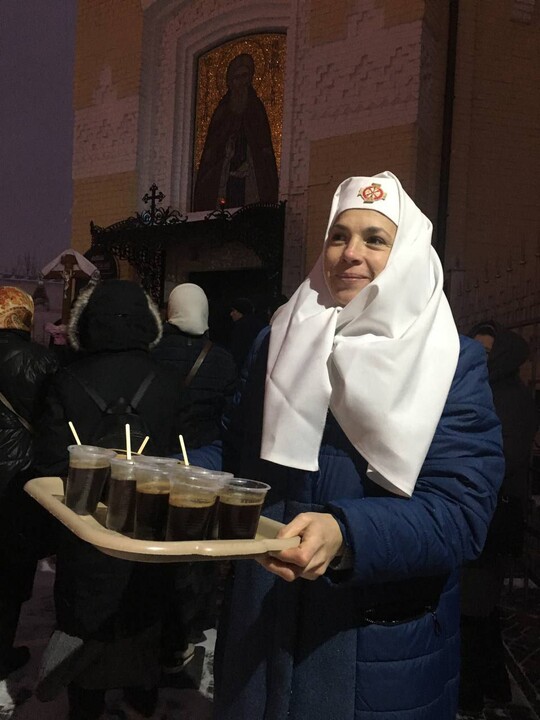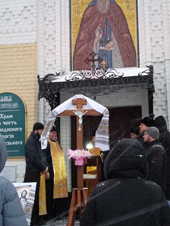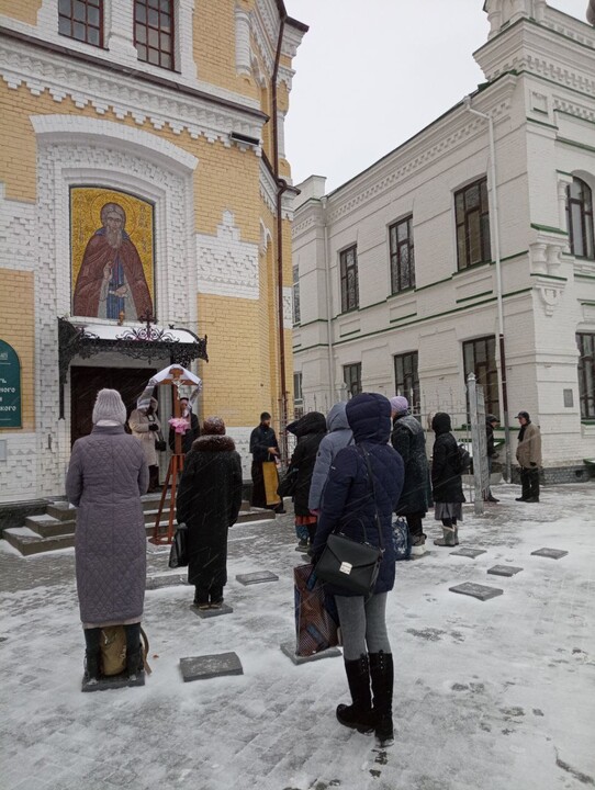 Prayer continues at the Lavra despite cold weather and sleet