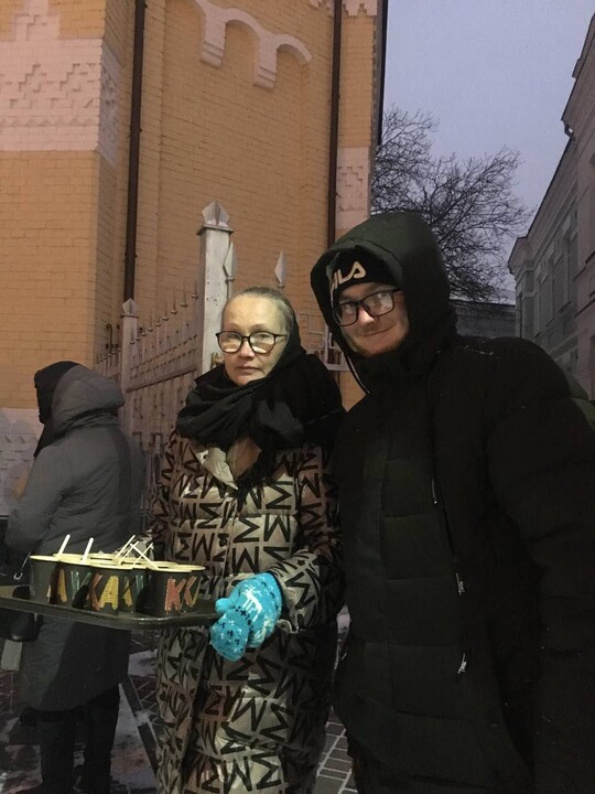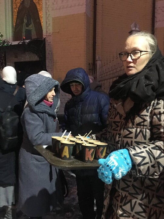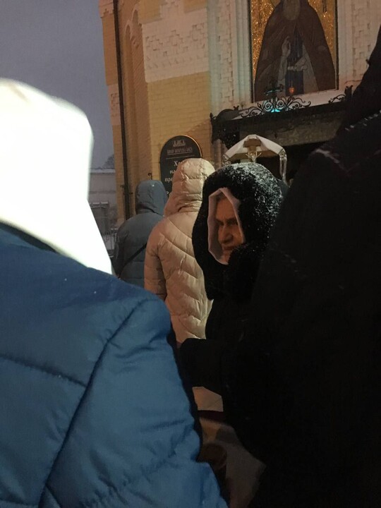 The prayer standing near the Kyiv Lavra continues, despite the bad weather.