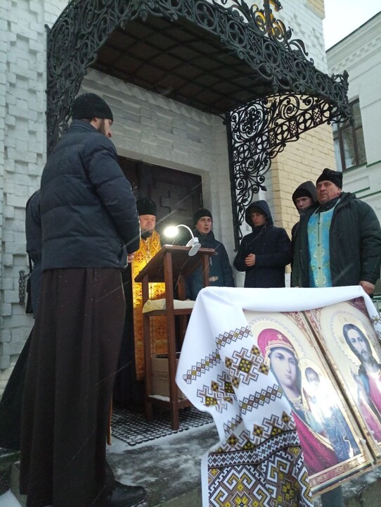 Despite the cold and snow, several dozen UOC believers gathered near the Kiev Pechersk Lavra to continue their prayer in defense of the monastery.