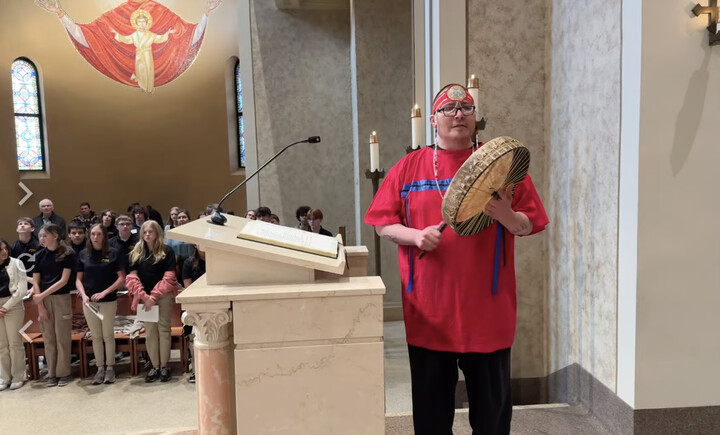 A video of the mass was posted on the diocese's YouTube channel, featuring a group of women dressed in traditional Native American clothing and holding feathers in their hands dancing around the altar.