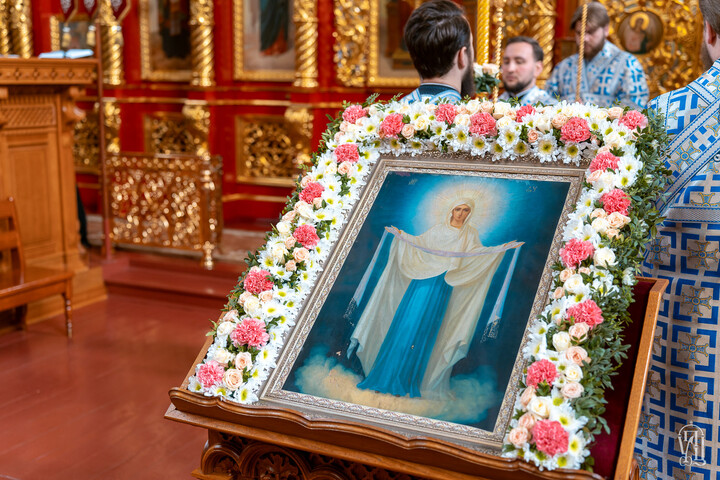 The service of the Feast of the Praise of the Most Holy Theotokos has a feature that distinguishes it from all other church services of the year. During the morning service, the Akathist to the Mother of God is performed in a special way: it is divided into four parts and solemnly sung by clergy and choir.