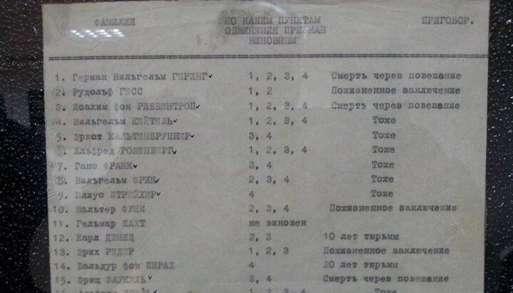 Hitler and his clique, guided by the desire to gain the whole world, forgot about their souls. The Nuremberg Tribunal, exposing their crimes in the face of history and humanity, however, gave them the opportunity to think about repentance and God.