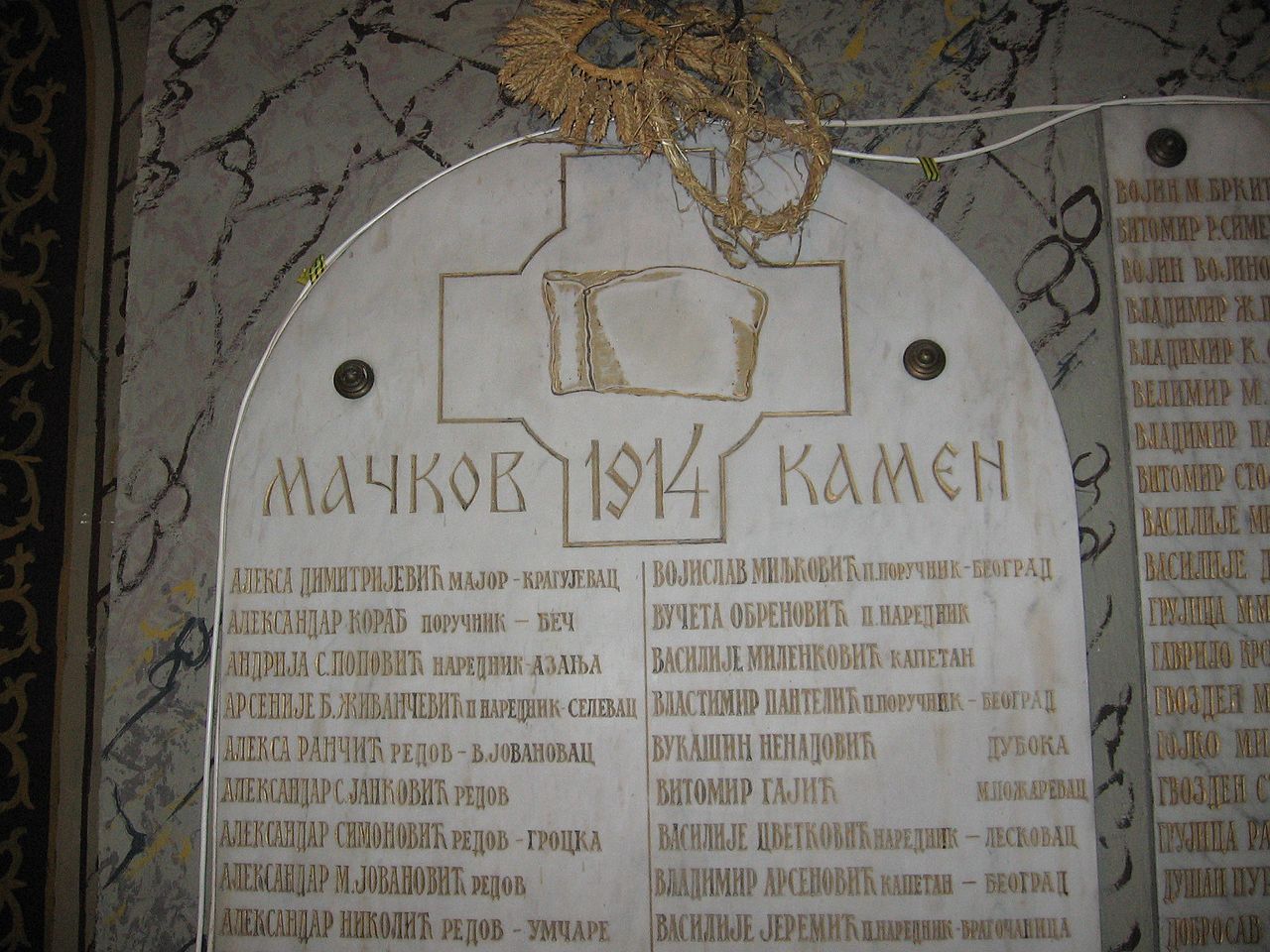 На платоу на врху планине Јагодње, на самом врху Мачков камен, подигнута Спомен-костурница 1929. У њеном подизању учествовало је много људи: почев од Одбора за подизање капеле на Мачковом камену, коју је чинила државна, интелектуална и локална елита, све до сељака који су добровољно довозили материјал за њену изградњу.