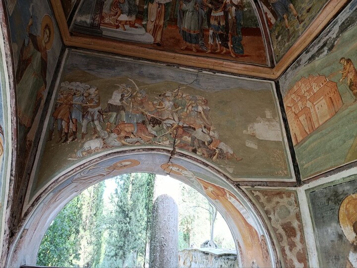 Овде су сачуване фреске из XIV века, а на горњем делу олтара налази се светиња Кареје, чудотворна икона Мајке Божије Достојно Јест, а чува се такође и чудотворна икона Христа Спаситеља.