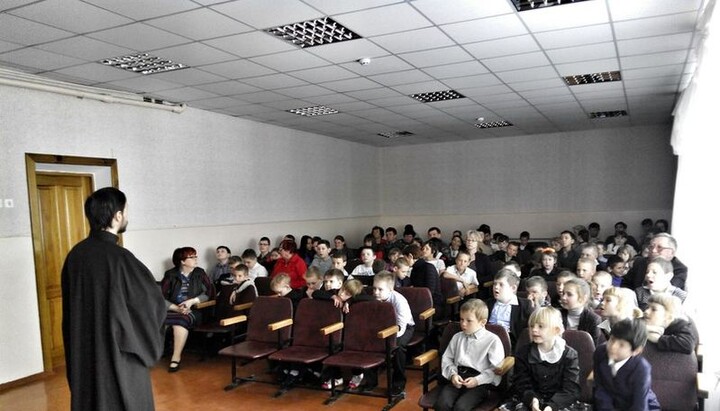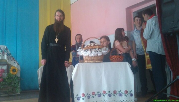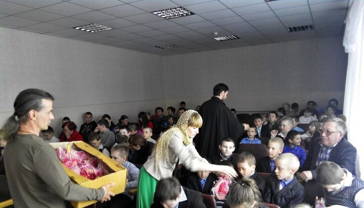 In Zaporozhye on May 6 cleric of St. Nicholas church, protopriest Viktor Usatiuk together with his parish congratulated on Easter fosterlings of the department for social adaptation and rehabilitation of children with special needs of Khortitsa territorial social service center. The priest sanctified the institutional building and handed over gifts. Besides, a festive concert was prepared for the children.