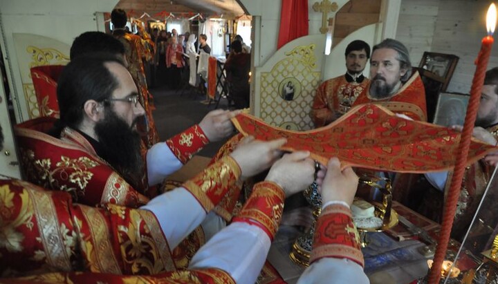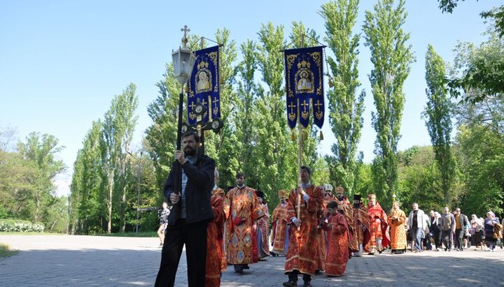 Vladyka sent his congratulations to the clergy and parishioners of the church from the UOC Primate. He also congratulated the veterans of the Second World War on the Victory Day over Nazism. After the worship bishop Feodosiy led the Cross Procession to the Military Cemetery, where the service for the dead soldiers was conducted.