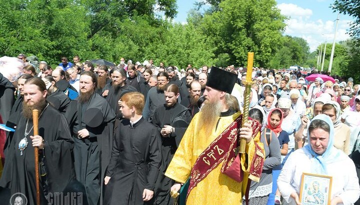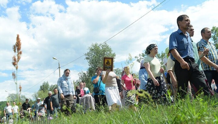 About 2 thousand believers on hearing the sermon and receiving blessing of the father superior of Sviatogorsk Lavra Met. Arseny, made for Bogorodichnoye village (the first pit stop of the procession). After the moleben prayer the Cross Procession will be resumed.