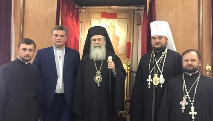 Within the framework of the pilgrimage to Israel, Bishop Alexander met with the Primate of the Patriarchate of Jerusalem Theophilos III. The meeting was attended by Yuri O. Doroshenko, the press secretary and advisor of the head of the UOC-KP, along with the accompanying the Metropolitan clergy.