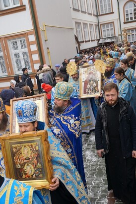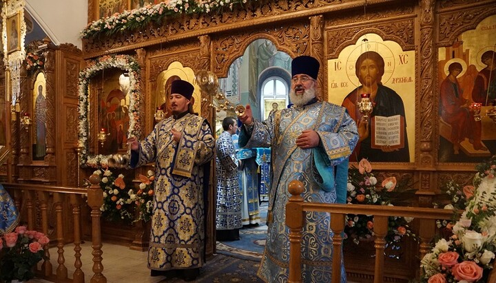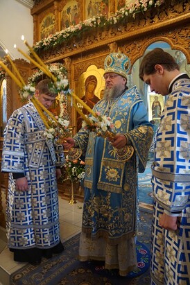 After the vacation His Beatitude led the festive prayer service and a cross procession, greeted the faithful on the feast, sprinkled with holy water and blessed everyone.