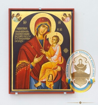The exhibition shows a copy of the picture of the Holy Mount Athos from the wall-painting of All Saints church of 1906 – the only sample of the ancient tradition of Athos depiction in temples of the Kiev-Pechersk Lavra; copies of miraculous icons of the Mother of God with dedicatory inscriptions of Athonite masters’ work, sent to Ukraine as a sign of blessing; a collection of various crosses and icons of Athos dated XVI-XIX centuries, Athos icons of the new iconography (Saints of Athos Synaxis); scientific and popular editions on the Holy Mount subject matter, ancient engravings and many other articles.