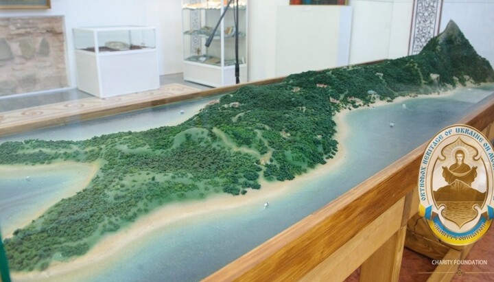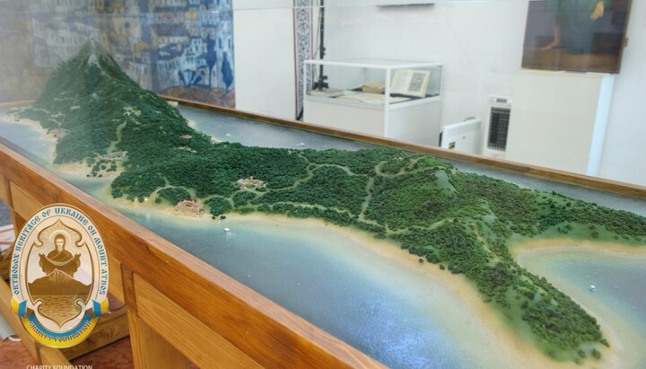 During the presentation of the exhibit Charitable Fund “Orthodox Heritage of Ukraine on the Holy Mount Athos” presented a unique tree-dimensional maquette of the Holy Mount Athos (its size being 2,5 m long and 0,9 m wide), which is totally identical in its configuration to the relief of the Godmother’s Abode, and a 3-D maquette of the Great Lavra of Athanasius the Athonite (1200 by 85 cm), whose architecture was taken as a basis for constructions of monasteries and some sketes on the Holy Mount Athos.