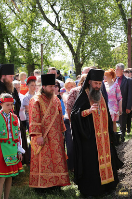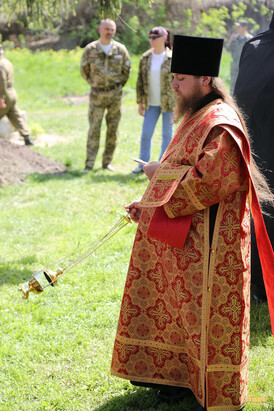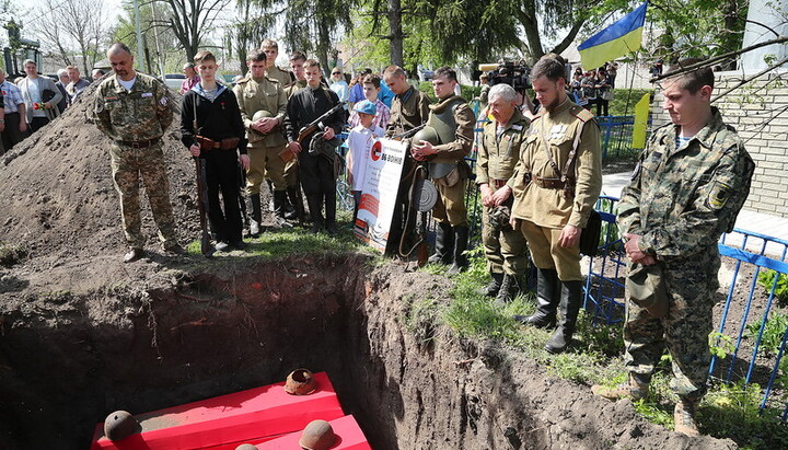 Before the remains of the soldiers fallen in the battlefield, a lithium was served. Cathedral prayer in memory of the deceased soldiers was offered by the inhabitants of the Holy Dormition Svyatogorsk Lavra, headed by Archimandrite Ambrose (Bobrov). Memorial chants were performed by the Svyatogorsk monks under the guidance of the regent hieromonk Raphael (Popov).