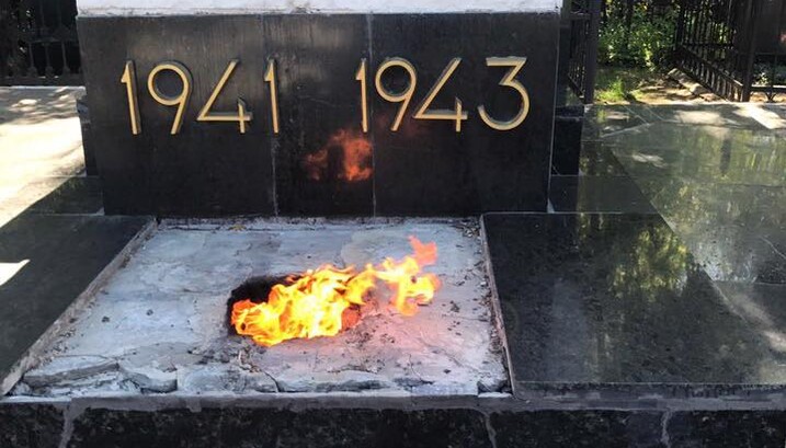 “It is for the third time in half a year – first it took place in November 2016, then a month ago, and the last time – they vandalized the bed of honor where 610 liberators of Kharkov city are buried, together with the tomb of Marshal Bazhanov.They take off letters, a star from the eternal flame and damage the flame itself.