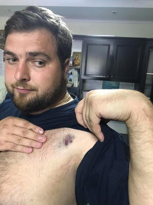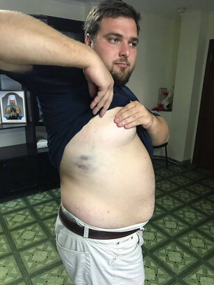 "The events that took place on August 28 at about 11 am had a very different chronology than the one presented by the representatives of the Kyiv Patriarchate," says father Vitaly. “After serving, I waited for the car to go to a neighboring village for celebrating the holiday, so when the car started to buzz around me, I turned and waved my hand. In response, from the slightly opened window, I saw the middle finger, which was shown to me by the priest of the UOC-KP, Alexander Timoshchuk. I went on foot and caught up with the car near the school, the father came out of it, so I asked him what signs he showed me through the window. Alexander Timoschuk began to speak rudely, pushed me, tore off the sleeve from the cassock, and a fight broke out between us, its result being reflected on my body, although I did not organize a press conference on this matter."