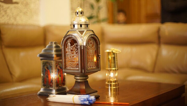 The Holy Fire from Jerusalem to Ukraine was delivered by the official delegation of the Ukrainian Orthodox Church led by the Chancellor of the UOC Metropolitan Anthony of Borispol and Brovary on April 7, at 19 pm. The Fire was given to the clergy of the UOC.