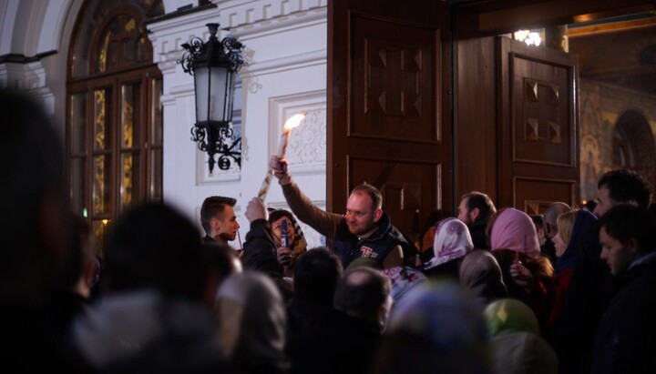 After the Easter midnight service, at 12:00, the Primate of the UOC, the clergy and believers had a festive procession with candles, symbolizing the transition from the darkness of paganism to the light of Christianity.