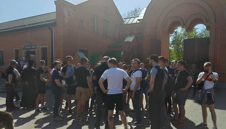 On the afternoon of May 4, right-wing radicals from "S14" led by Yevgeny Karas got into the Holy Protection Goloseevo Monastery of the UOC and began insulting monks, reports the UOC Information Centre.