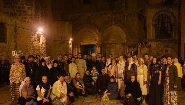 On the night of September 9, 2018, Metropolitan Luke of Zaporozhye and Melitopol, leading the pilgrimage delegation of the UOC, performed the Liturgy at the Jerusalem Church of the Resurrection of Christ. He was concelebrated by the senior vessel guard of the Church of the Resurrection of the Lord, Archbishop Isadore of Hierapolis, Archbishop Panteleimon of Bucha, Archbishop Peter of Chicago and Mid-America, Archbishop Stephan of Gomel, and the UOC clergy.