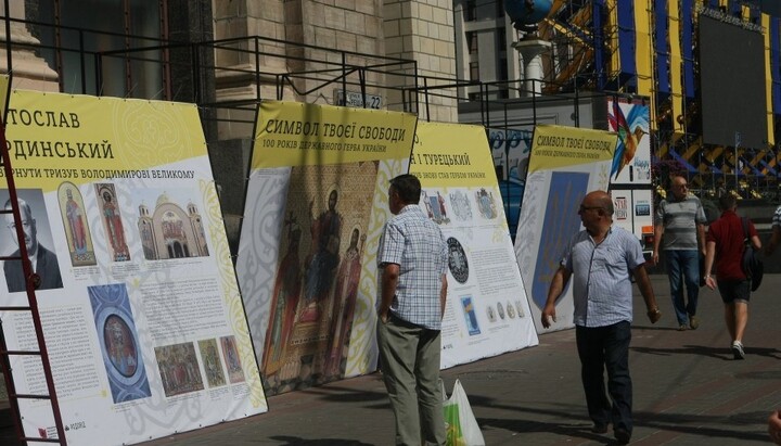As it became known to the UOJ, the banner with this icon is part of the open-air exhibition "The Symbol of Your Freedom. 100 Years of the State Emblem of Ukraine", organized by the National Memory Institute under the leadership of Vladimir Viatrovich.