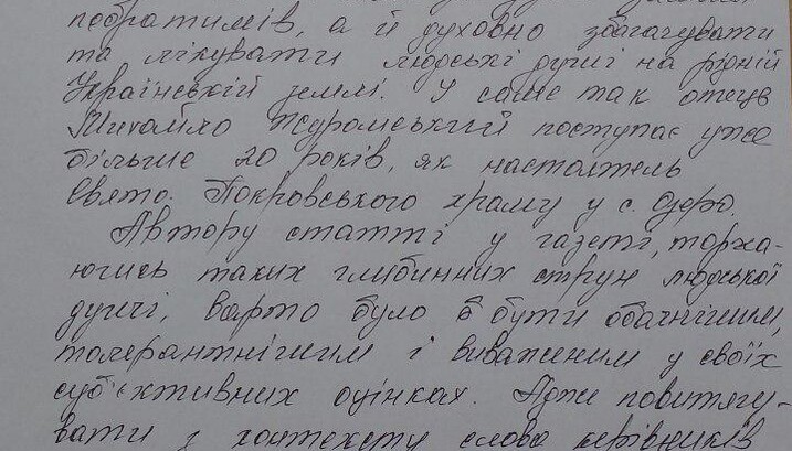 The author of the newspaper article, touching upon such deep strings of the human soul, should be more cautious, tolerant and balanced in his subjective judgments. After all, there is no need for a great mind to take out of context the words of the leaders of the region, district, spokesman for the eparchy, from the Facebook, as well as to judge the actions of the priest one-sidedly, as he sees fit.