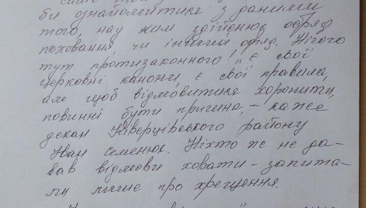 That is why the priest had to find out about the person who he was going to perform the funeral or another rite for. There is nothing unlawful here! "There are rules, but to refuse to bury, there must be reasons," says Ivan Semeniuk, the dean of the Kivertsy district (UOC KP). Nobody refused to bury – the priest only asked about baptism.