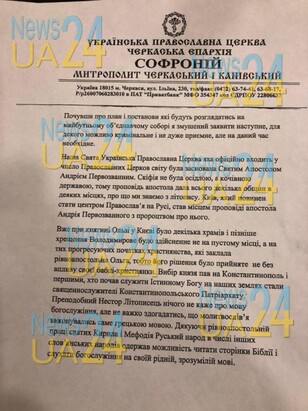 The Tomos, which the Patriarchate of Constantinople will grant the Church in Ukraine, should give it the status of equality with other Local Orthodox Churches. This is stated in the appeal of Metropolitan Sofrony of Cherkassy and Kanev, published on news24ua.