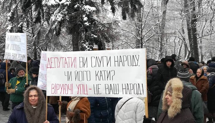 Orthodox believers are praying so that the deputies will not vote for bills Nos. 4128, 4511 and 5309, reports the "1Kozak.tv" channel.
