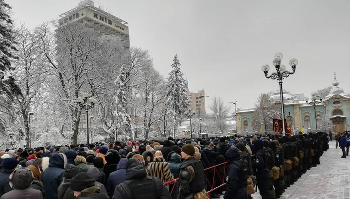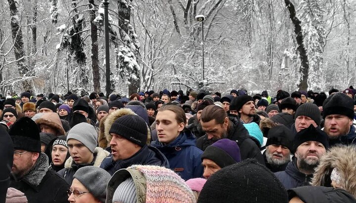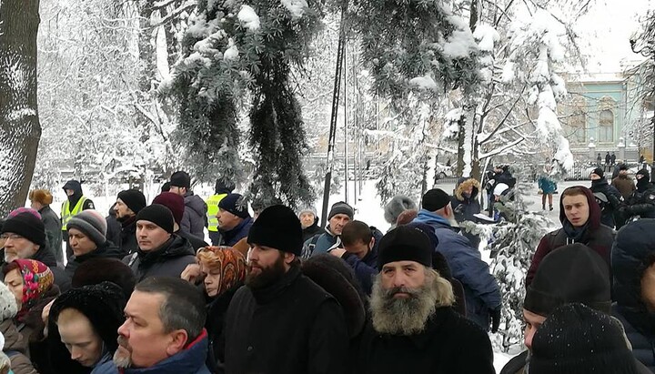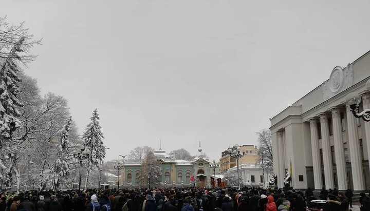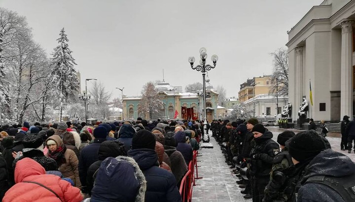 Several thousand Orthodox believers gathered for a public prayer under the Verkhovna Rada walls as a protest against the possible adoption of anti-church bills.