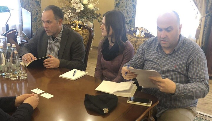 The activists of the new church structure came to the building of the eparchial administration precisely when the meeting of Metropolitan Nikodim (Gorenko) of Zhitomir and Novograd-Volynsky with OSCE SMM representatives took place.