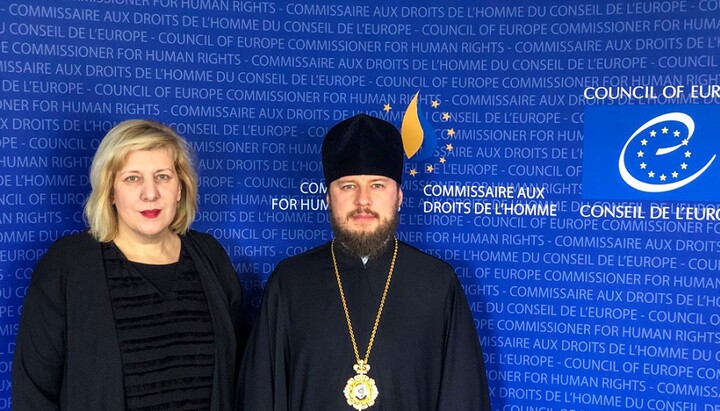 The meeting of Bishop Victor of Baryshevka, Head of the Representative Office of the UOC to the European International Organizations, and Dunja Mijatović, Commissioner for Human Rights of the Council of Europe, took place today, February 28, at the Council of Europe in Strasbourg, reports the Information and Education Department of the UOC.