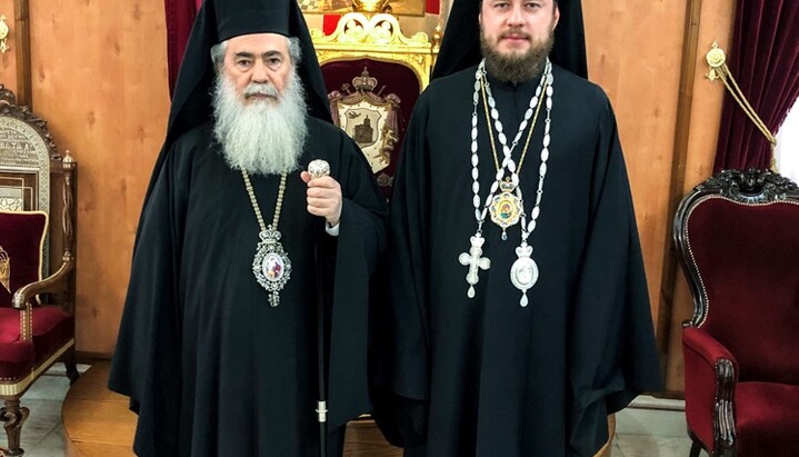 On March 4, 2019, with the blessing of His Beatitude, Metropolitan Onufriy of Kiev and All Ukraine, Bishop Victor of Baryshevka, Vicar of the Kiev Metropolis, met with the Patriarch of Jerusalem, Theophilos III. Archbishop Theophylactus of Jordan and Protopriest Nikolai Danilevich, Vice-Chairman of the Department for External Church Relations of the UOC, also took part in the meeting, according to the Information and Education Department of the UOC.