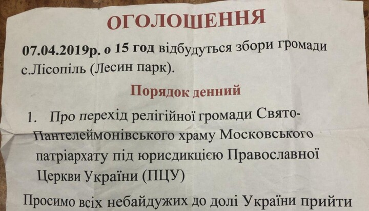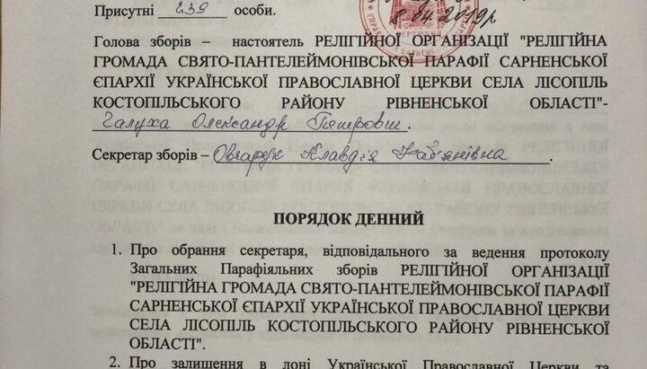 As it became known, the meeting of the parish council of the St. Panteleimon Church in the village of Lesopol of the Kostopol district, Rovno region, took place on April 7, 2019, immediately after the Liturgy.