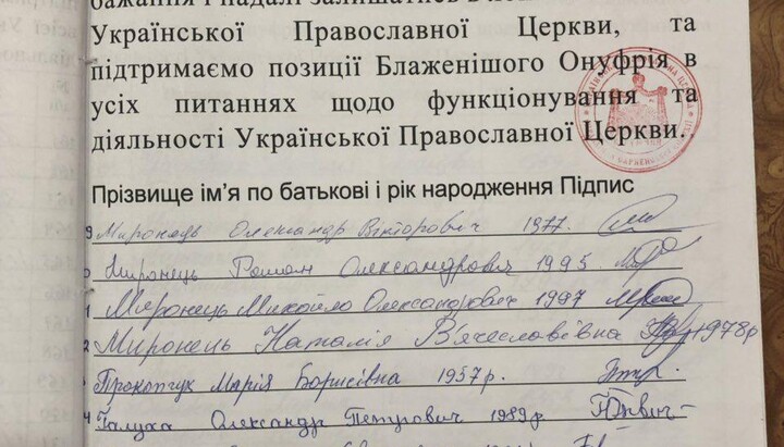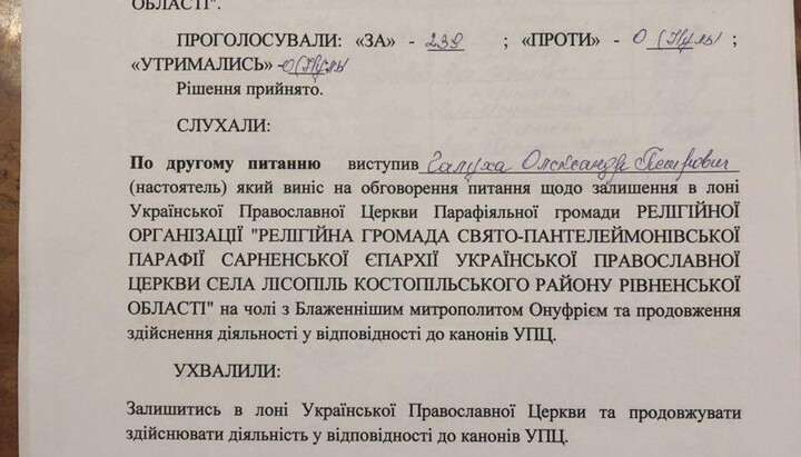 260 parishioners expressed their loyalty to the Ukrainian Orthodox Church during the meeting. The elected secretary recorded this in the protocol signed by the meeting attendees. Under current law, the bishop and the notary publicly endorsed this document.