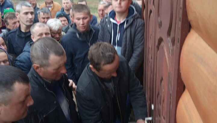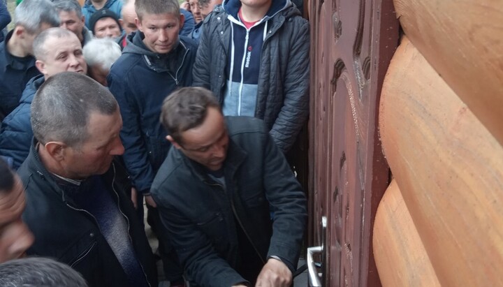 In turn, the territorial community, led by the chairman of the village council and local activists, held their meeting on the “transfer” to the OCU. On the basis of the decisions of this allegedly “religious community”, the authorities registered the “transfer” and informed one and a half hundred believers of the UOC that they no longer exist. Now, having received the registration documents, the head of the village council, representatives of the police and OCU activists have come with grinders to the UOC temple, and are preparing to cut locks on the church to take it over.