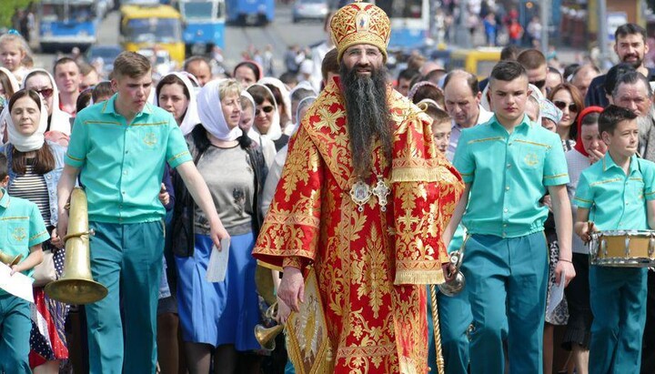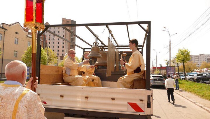 The religious procession went through the city centre, passed the cathedral seized by the OCU, and ended with the Easter service near the Resurrection Church.