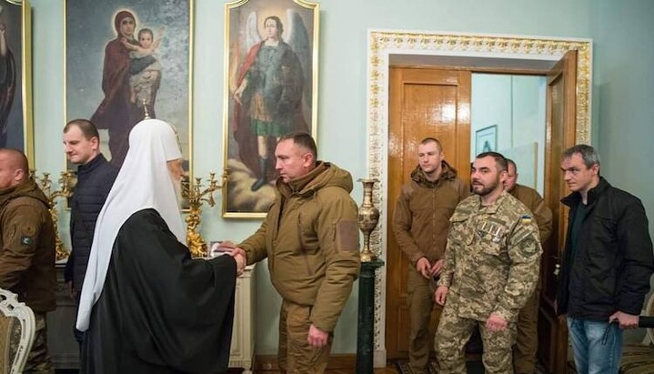 On May 30, “Patriarch of all Rus-Ukraine” Filaret Denisenko congratulated the activists, among whom was the leader of the radical organization “S14” Yevgeny Karas, on Easter and gave them medals “for fighting with the Russian aggressor”.