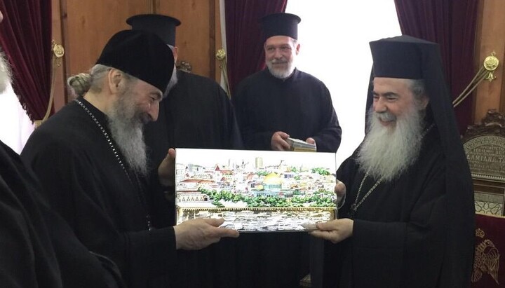 On May 17, 2019, His Beatitude Metropolitan Onuphry of Kiev and All Ukraine met with the Primate of the Jerusalem Orthodox Church, His Beatitude Patriarch Theophilos III, the UOC Information and Education Department reported.