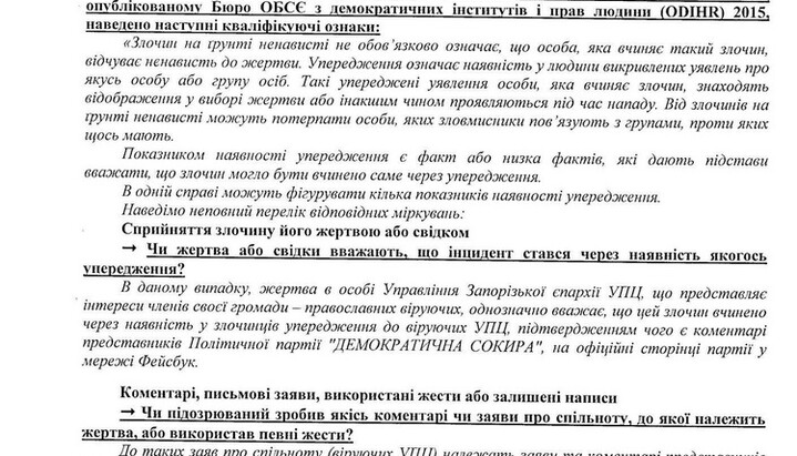 “If there is a lack of proper response to the timely and comprehensive investigation of this offence by law enforcement agencies, the Zaporozhye Eparchy Administration of the UOC will seek assistance from the Commissioner for Human Rights of the Verkhovna Rada of Ukraine, national and international human rights organizations, in particular, the OSCE Office for Democratic Institutions and human rights, the methodological guidelines of which were used to qualify the acts of the perpetrators and compile this statement,” concluded Metropolitan Luke.