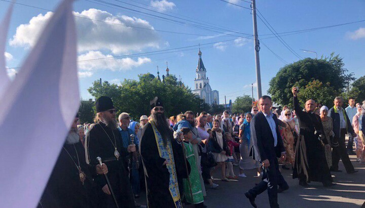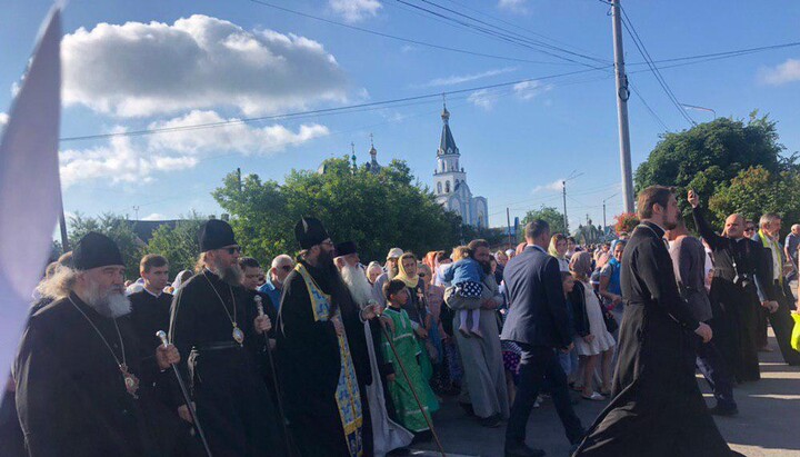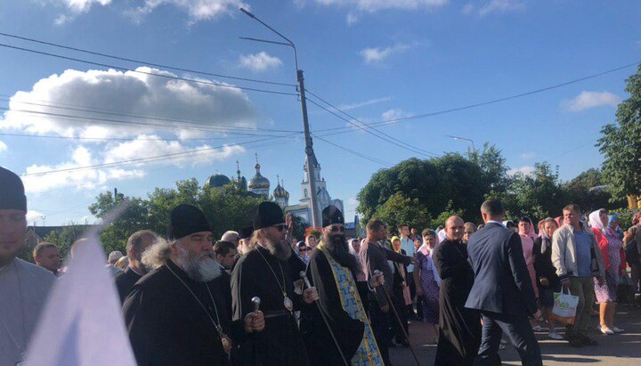 The procession was led by the Metropolitan Anthony (Pakanich) of Borispol and Brovary, Chancellor of the UOC, and Archbishop Varsonofy (Stoliar) of Vinnitsa and Bar.