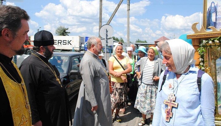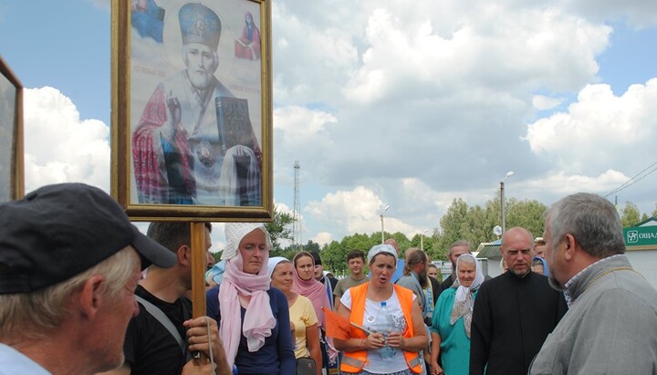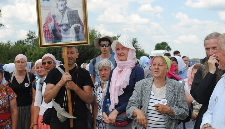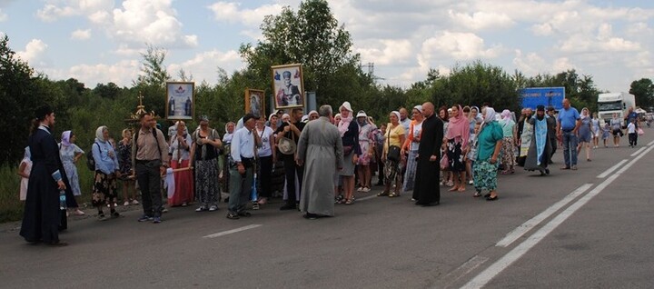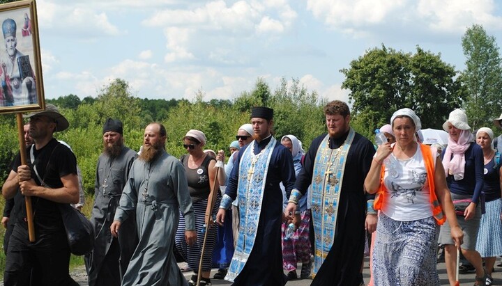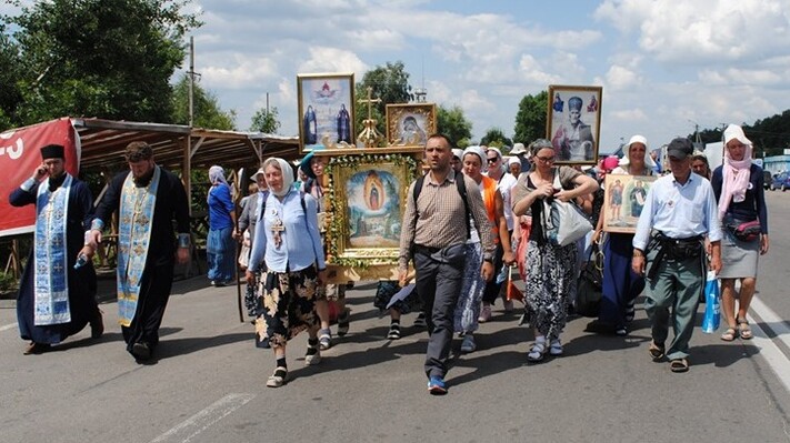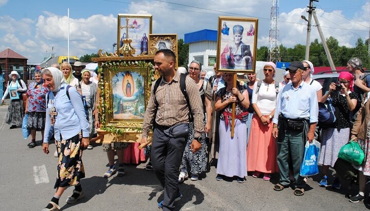 The procession participants are heading for the Holy Dormition Pochaev Lavra to participate in celebrations of the Pochaev Icon of the Mother of God.