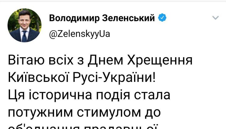 On July 28, 2019, President Vladimir Zelensky posted a Twitter greeting on the occasion of the 1031th anniversary of the “Baptism of Russia-Ukraine”.