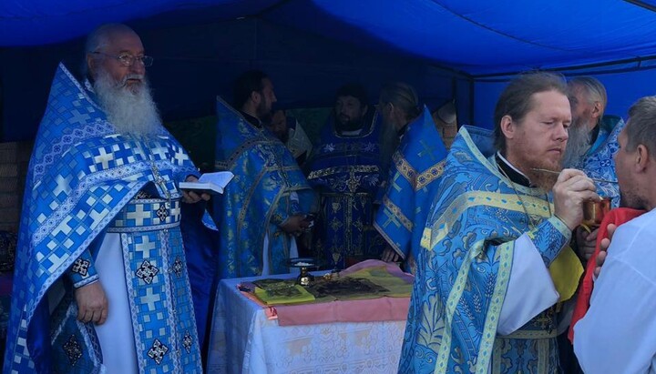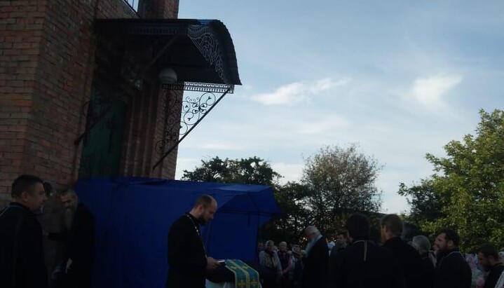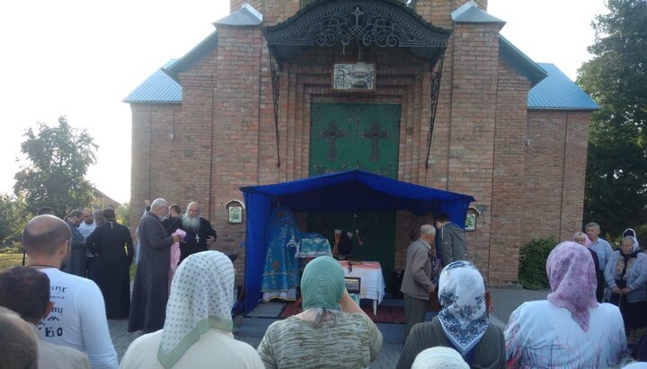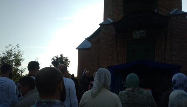 On August 7, 2019, the community of the UOC of Gvardeiskoye village in the Khmelnitsky region gathered for worship at the closed Holy Assumption temple, which had been illegally transferred to the OCU.