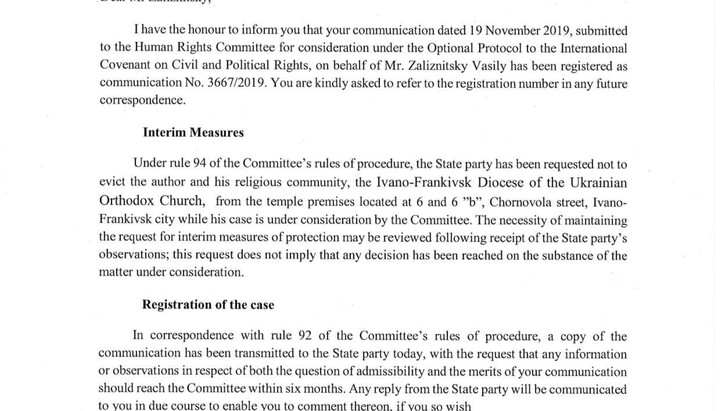 The consideration of the Request of human rights defenders about the violation of the rights of the UOC religious community was examined by the UN Committee in accordance with the additional protocol to the International Covenant on Civil and Political Rights.