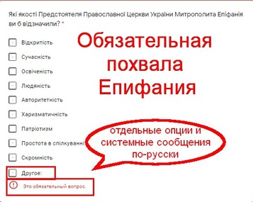 He also notes that although in the survey the OCU positions itself as the “Ukrainian Church” and the questions are written in Ukrainian, all system pointers and additional options are made in Russian.