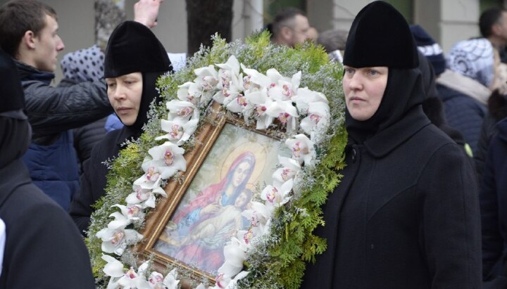 Traditionally, the procession went from the Holy Resurrection Cathedral of Rivne to the St. George Metochion of St. Nicholas Convent. The column was led by well-known local cross walkers, who every month at night time go around the city with prayer to protect it from evil. They were followed by those that carried festively decorated icons of the Rivne diocese, which everyone could revere at the end of the prayer service.