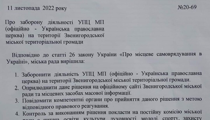 The mayor of Zvenyhorodka Oleksandr Sayenko in a comment to "Ukrinform" said that the deputies "decided not to wait for the Verkhovna Rada decision, and the last straw was a video from the Pechersk Lavra", where allegedly Moscow priests glorified the Russian Federation.