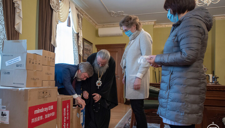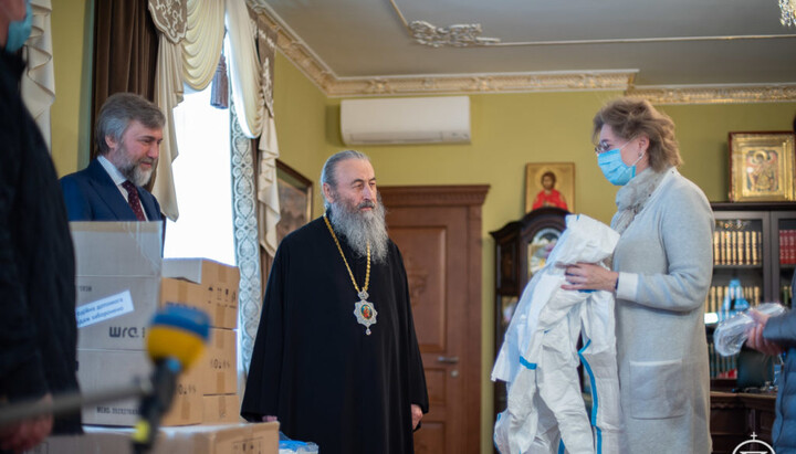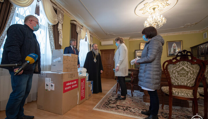 On March 30, 2020, the Primate of the UOC, His Beatitude Metropolitan Onuphry of Kyiv and All Ukraine, handed over an artificial respiration apparatus and personal protective equipment for medical workers of the Alexander City Clinical Hospital in Kyiv, reports the UOC Information and Education Department.